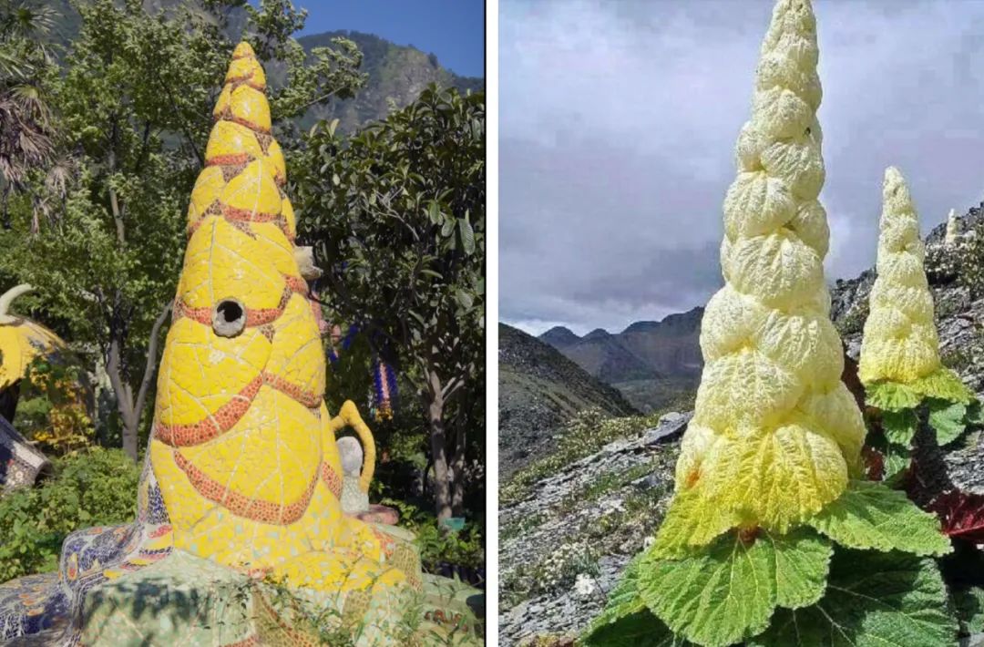 塔黄塔(左),塔黄生长在海拔4000米以上的高原地区,一生只开一次花