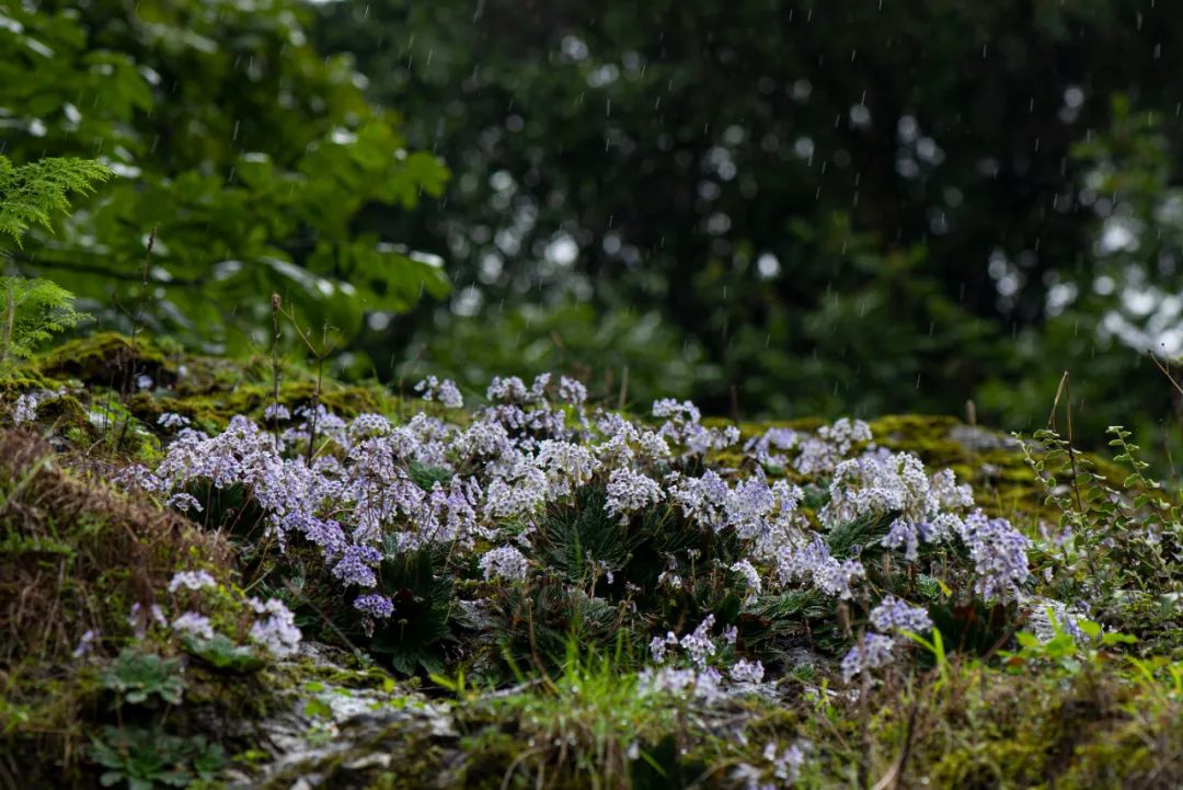 找到心仪的植物,是每次冒险赐予他们的奖赏。不久前,刘明在川滇交界的地方,第一次遇见西藏珊瑚苣苔开满整个峡谷。这种植物的野外生存条件非常苛刻,很难见到这么大的群落,浅紫色的小花就像天上的繁星,超过上万株,非常壮观。