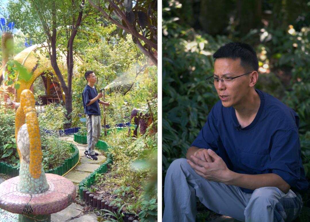 2018年,瓷片园终于开始建设,刘明喊来村子里没有外出务工的叔叔阿姨,一起建造这座“异想天开”的植物园。