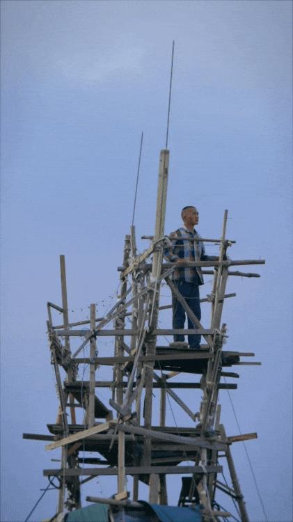 徒手搭起了一座10层楼、23米高的木质小楼。