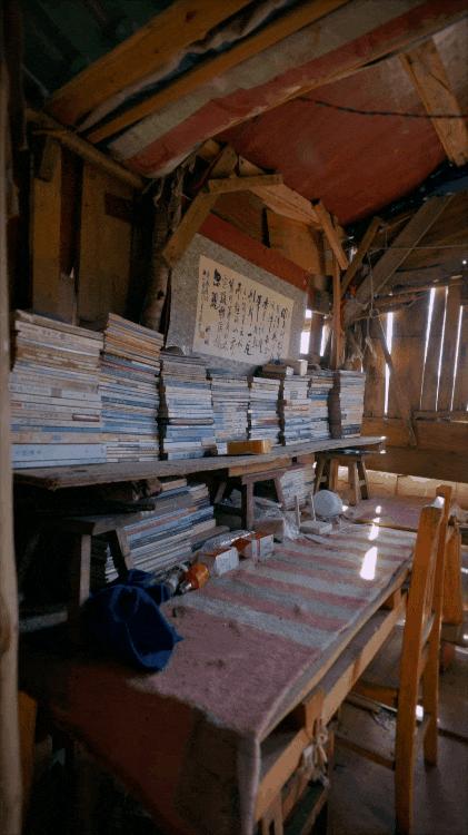 陈天明在楼上和我们打招呼,小跑下来帮我们搬设备箱。经过一条狭窄的石子路,我们来到了陈天明家的院子,门口挂着“闲人免进”的牌子。陈天明每天都会接待几批游客,有的只是在门口拍个照,有的会进来和他攀谈一番。