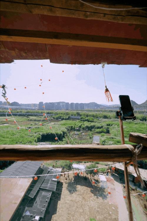 从兴义市区出发15分钟后,我们的车子驶上通往梨树坪的小路。远远就能看到陈天明的红色城堡,和背景的钢筋森林形成鲜明对比。