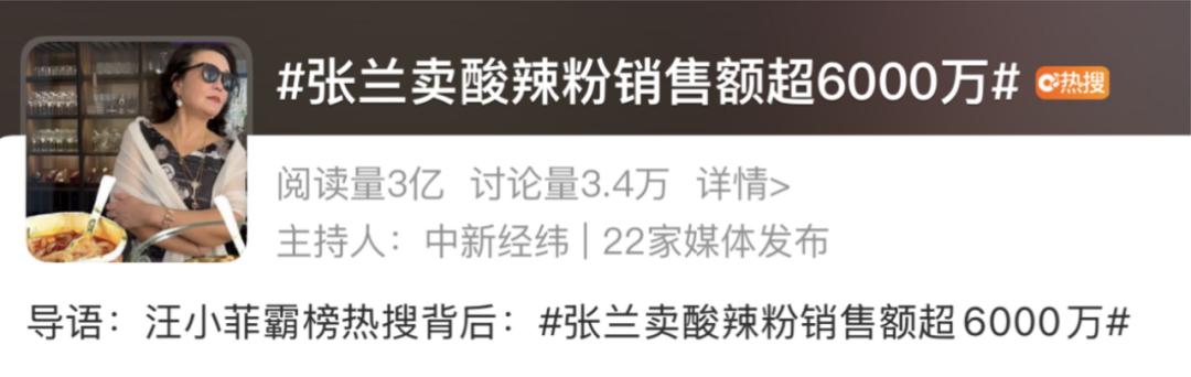 2022年11月,一场家庭纷争意外地让麻六记成为了公众关注的焦点,无数网友涌进张兰直播间在线吃瓜,张兰的个性赢得了不少人的好感,成功把流量转为了销量。据统计,2022年11月5日-21日,张兰共计直播40场,仅酸辣粉的销售额就超过了6000万,直播间里还有“绿茶+卤蛋+软饭”的话题性套餐。