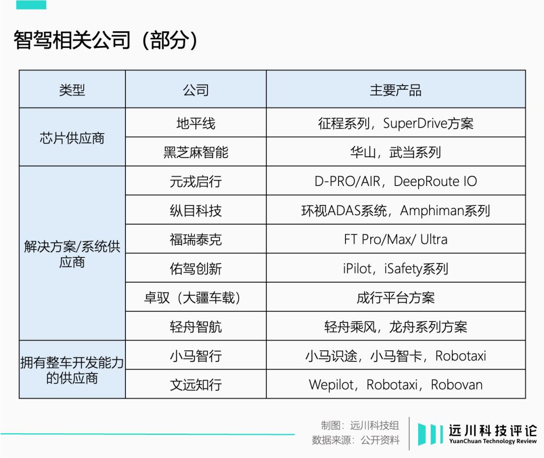 作为车企上游供应商,智驾公司可以简单分为三类: