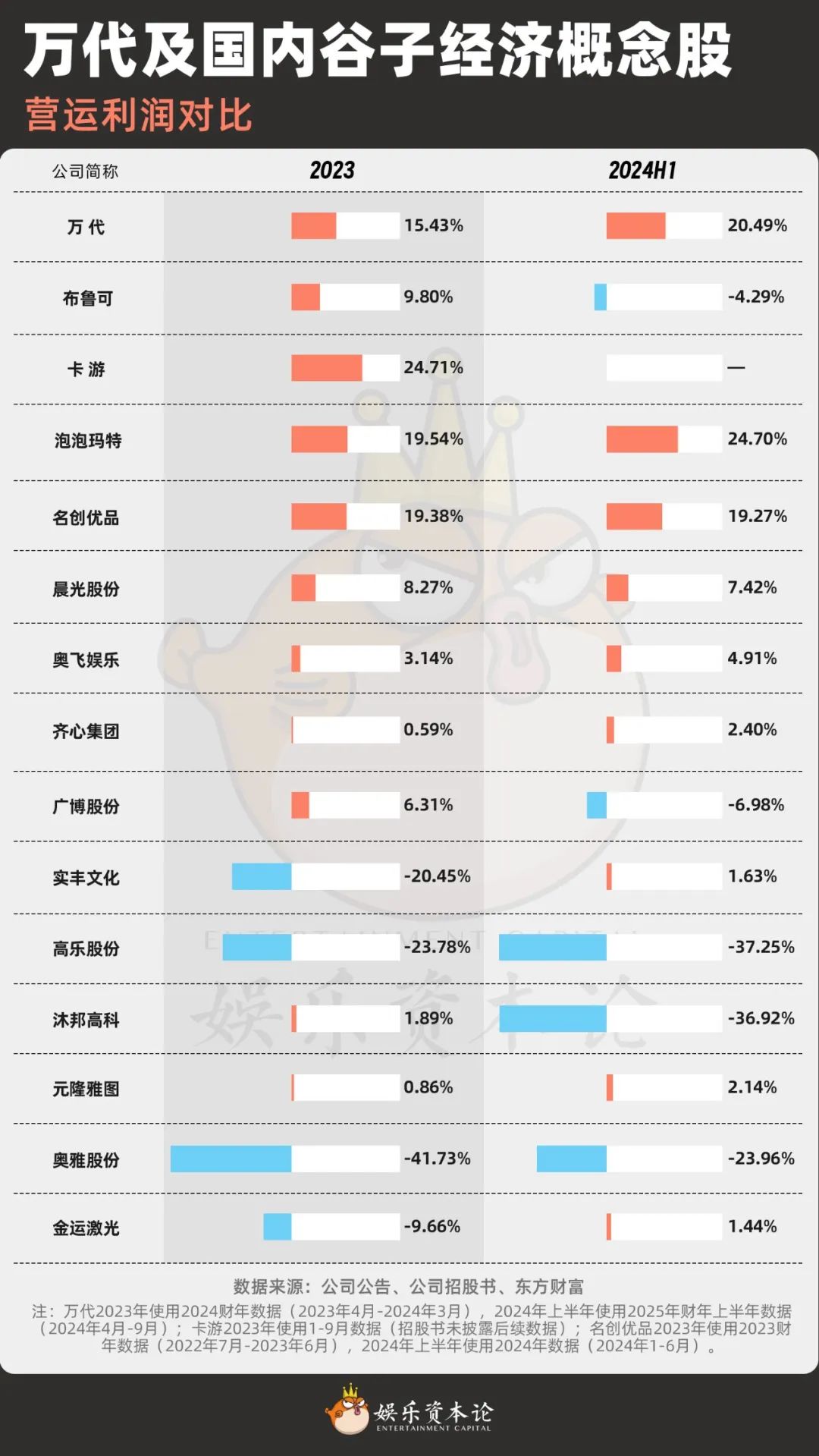 注:万代2023年使用2024财年数据(2023年4月-2024年3月),2024年上半年使用2025年财年上半年数据(2024年4月-9月);卡游2023年使用1-9月数据(招股书未披露后续数据);名创优品2023年使用2023财年数据(2022年7月-2023年6月),2024年上半年使用2024年数据(2024年1-6月)。