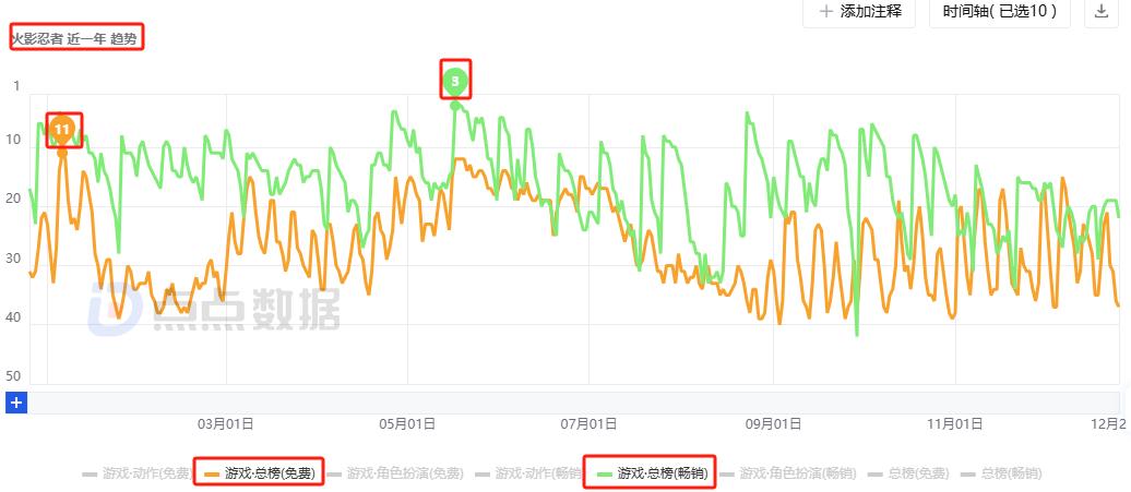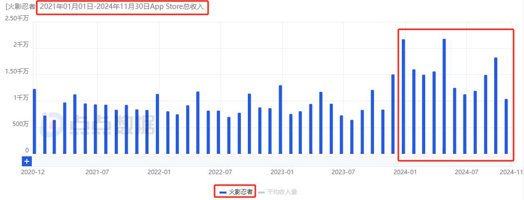 但就实际数据来看,已经运营8年多(2016年5月19日公测)的《火影忍者》近一年iOS游戏免费榜没有低于TOP40,畅销榜基本稳定在TOP25。iOS收入方面,2021年至今累计流水达到36.4亿元,今年预估在13亿左右(月流水在8000万至1.5亿之间浮动),同比去年增加了53%。