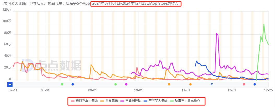 《航海王:壮志雄心》值得被关注首先是因为数据表现整体不错,公测5天iOS端流水达2700万;再者其研发团队也是魔方工作室,玩法整体与《火影忍者》趋同,这让其在后续表现以及能否碾压市场上其他《海贼王》IP改编手游的问题上变的需要被讨论;最后则是今年腾讯在国内市场推出了多款新游,该作是2024年上线的最后一款,其位于新游矩阵的位置也反应了腾讯今年的整体表现。