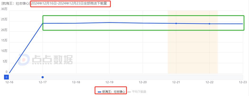 游戏公测前全平台预约人数已经达到2400万,其提前两天也就是12月17日开启预下载,当天以24万日下载(本文国内市场下载及市场数据仅统计iOS端)的成绩登顶iOS游戏免费榜,公测首日达到24.3万的峰值,之后日下载量一直维持在这个水平,没有出现明显的下滑趋势。