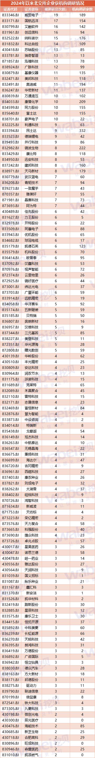 北交所上市公司2024年调研报告:84家企业无人调研 个别企业门庭若市(全名单)