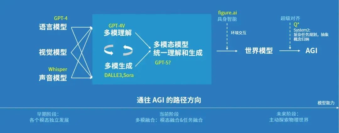 这张技术路线图由阶跃星辰发布于2024年3月,“超级对齐”部分的Q*、System2后来被证实为OpenAI发布的o系列推理模型
