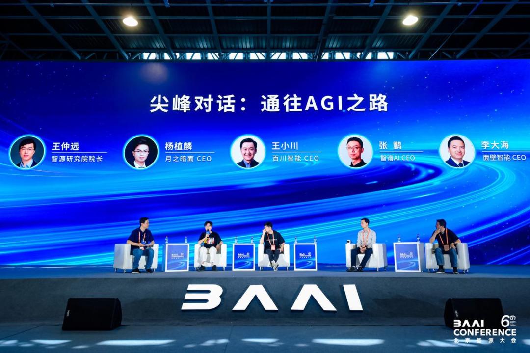 2024年6月14日的智源大会上,杨植麟、王小川、张鹏、李大海四位“清华系”大模型独角兽的创始人罕见同台,分享了各自对于“通往AGI之路”的观点。在智源研究院院长王仲远的主持下,几位创始人几乎没有直接的交锋,但这仍然是一次难得的同台。