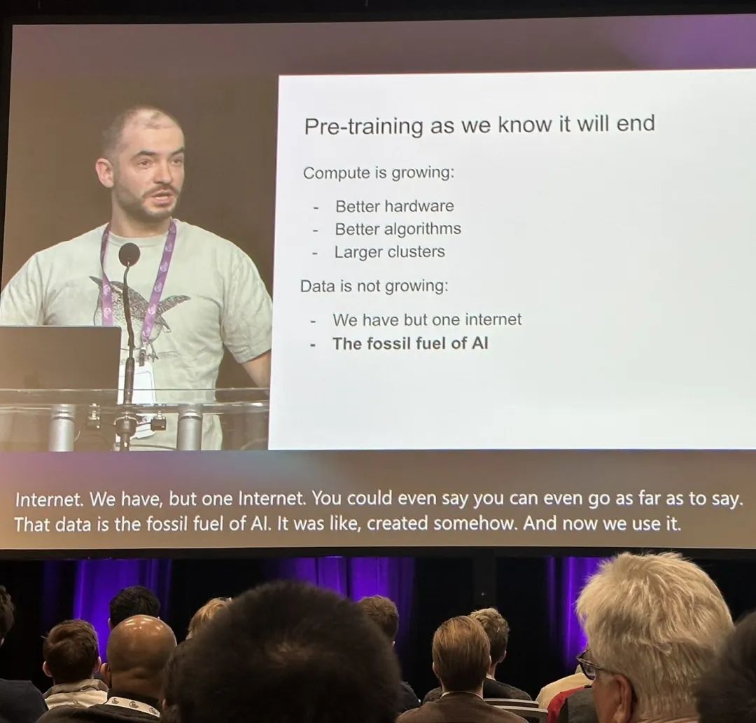 在NeurIPS 2024大会上演讲的Ilya,图片来自X