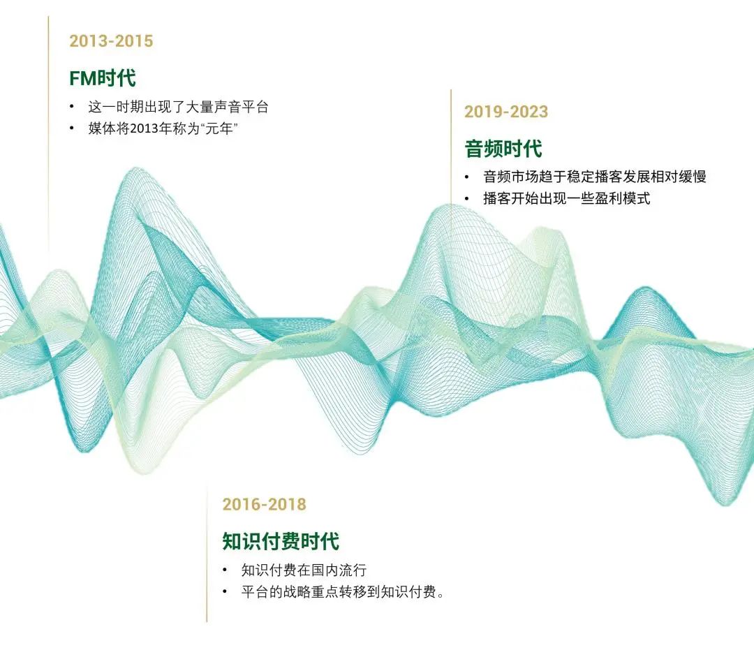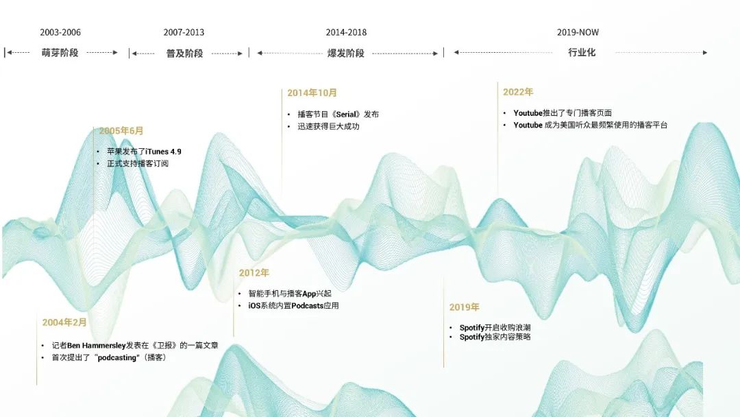 在此阶段“播客”作为一种新兴媒介,内容日益丰富,市场缓慢形成。