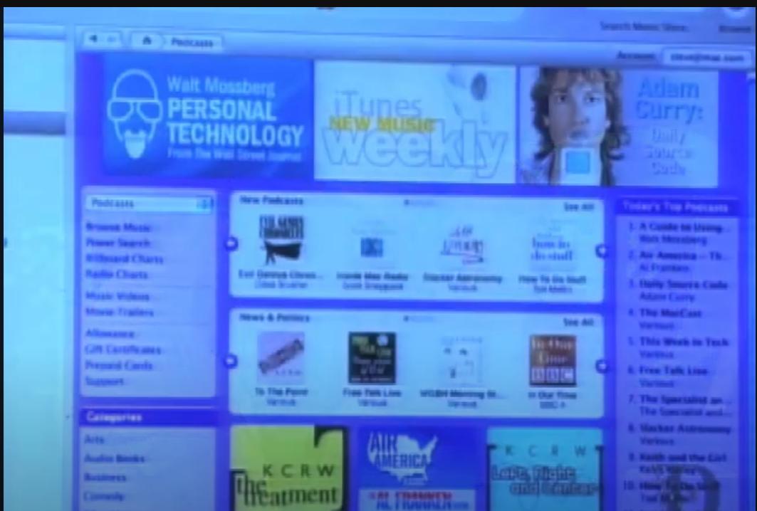在萌芽阶段,播客创作仍有一定技术门槛,创作者主要是技术开发者群体,比如 Daily Source Code(每日源代码),名字足以看出来节目主要用户群是开发者,主创 Adam Curry,iPodder应用程序的开发者,被称为“Podfather”(播客之父),节目吸引了大量热爱新技术的听众,并帮助许多听众后来成为创作者。在2005年D3大会上,乔布斯展示 iTunes的播客新功能时,播放了当时最新的一期节目,播客在会场回响,现在回看还是激动人心。