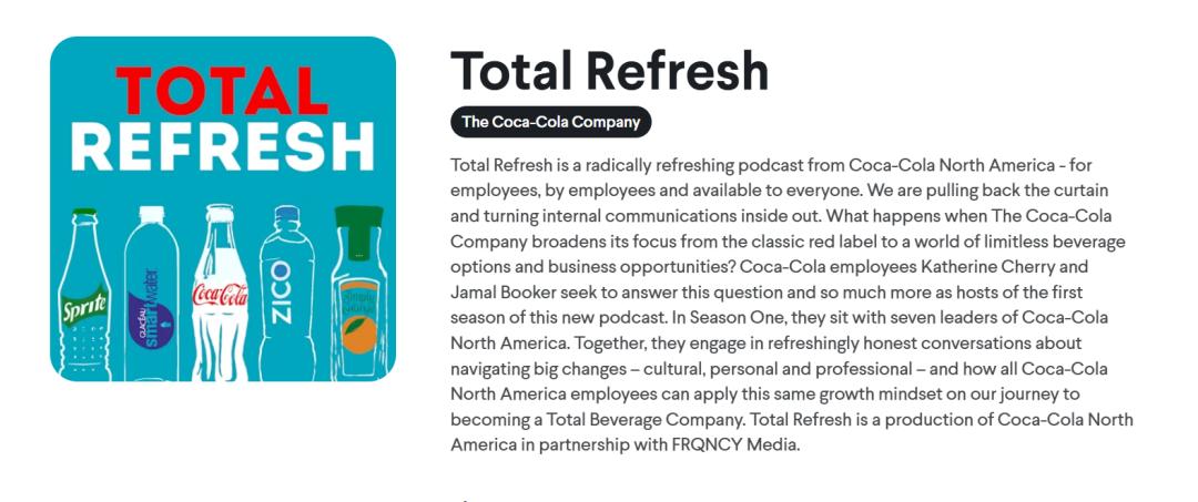 可口可乐品牌播客《Total Refresh 》,由可口可乐北美公司与FRQNCY Media联合制作