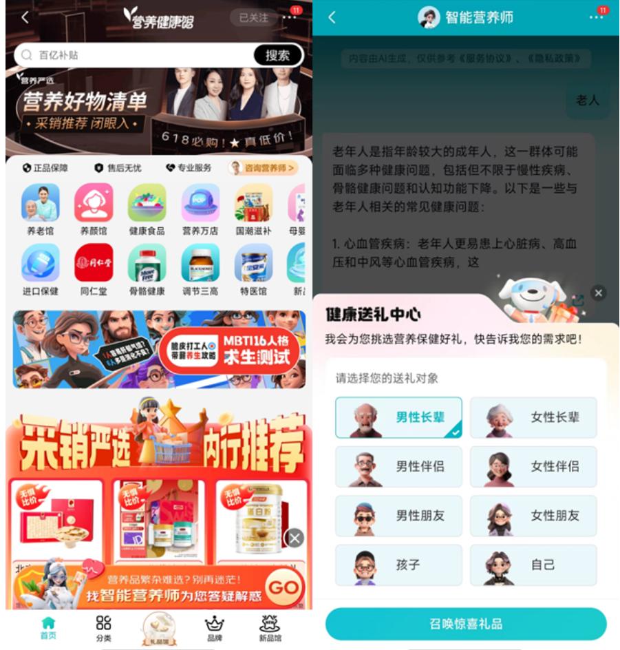 2024年618活动期间,京东营养保健品类上线130万款新品,联合多家品牌共同启动全家营养健康计划。