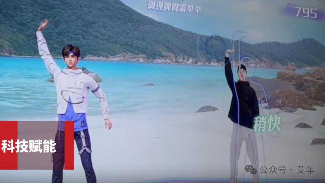 在乐龄健身方面,腾讯SSV将传统的八段锦锻炼内容和趣味游戏玩法相结合,运用虚实混合互动技术,将用户体验投射到虚拟场景中,搭配高精视觉AI技术,自动提醒并规范动作,让锻炼更有趣、更智能。