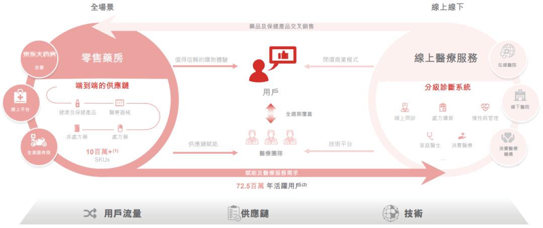 京东健康致力于打造以医药及健康产品供应链为核心,医疗服务为抓手,数字驱动的用户全生命周期全场景的健康管理平台,通过建立医疗健康产品和服务的端到端、全渠道的体系,重新定义用户管理个人健康的方式。