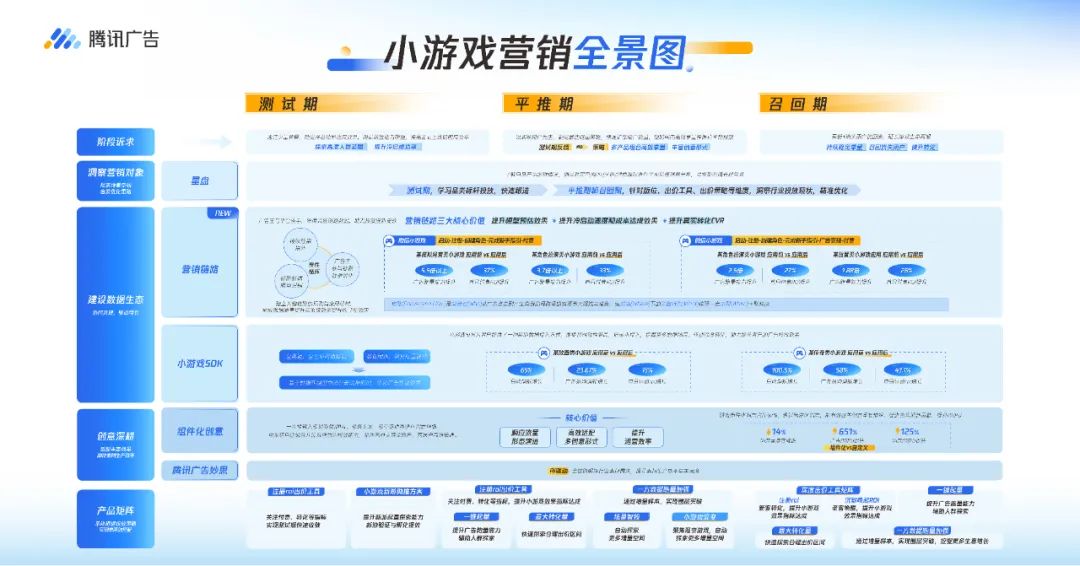 这个全景图并非简单的工具集合,而是一套完整的技术生态解决方案,它将小游戏的营销过程完整地分解为测试期、平推期和召回期三个关键阶段,并为每个阶段提供了高度匹配的技术支持和解决方案。