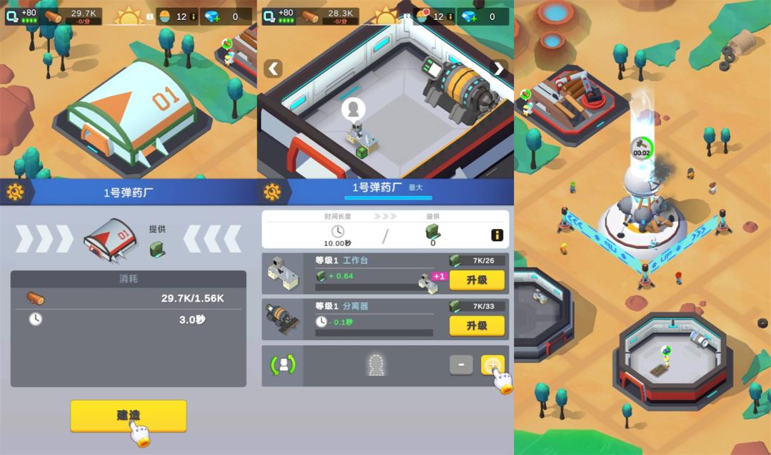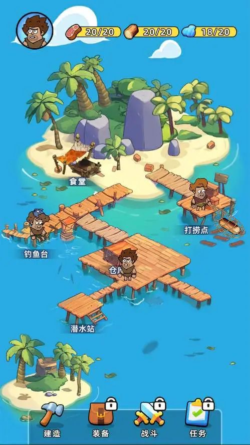 《Isle Drifters》《Alien Shelter》的核心玩法都是模拟经营。区别在于前者是荒岛求生题材,玩家漂流到岛上,通过建造钓鱼台、打捞点、潜水站等建筑来产出各种资源;后者是科幻求生题材,玩家要建造和升级太空基地,以抵御一波又一波丧尸的攻击。《Isle Drifters》上线没多久,玩法相对简单,可能是还处于测试阶段。《Alien Shelter》的要素就比较丰富了,包含建造、塔防、管理劳动力、收集资源和英雄等。