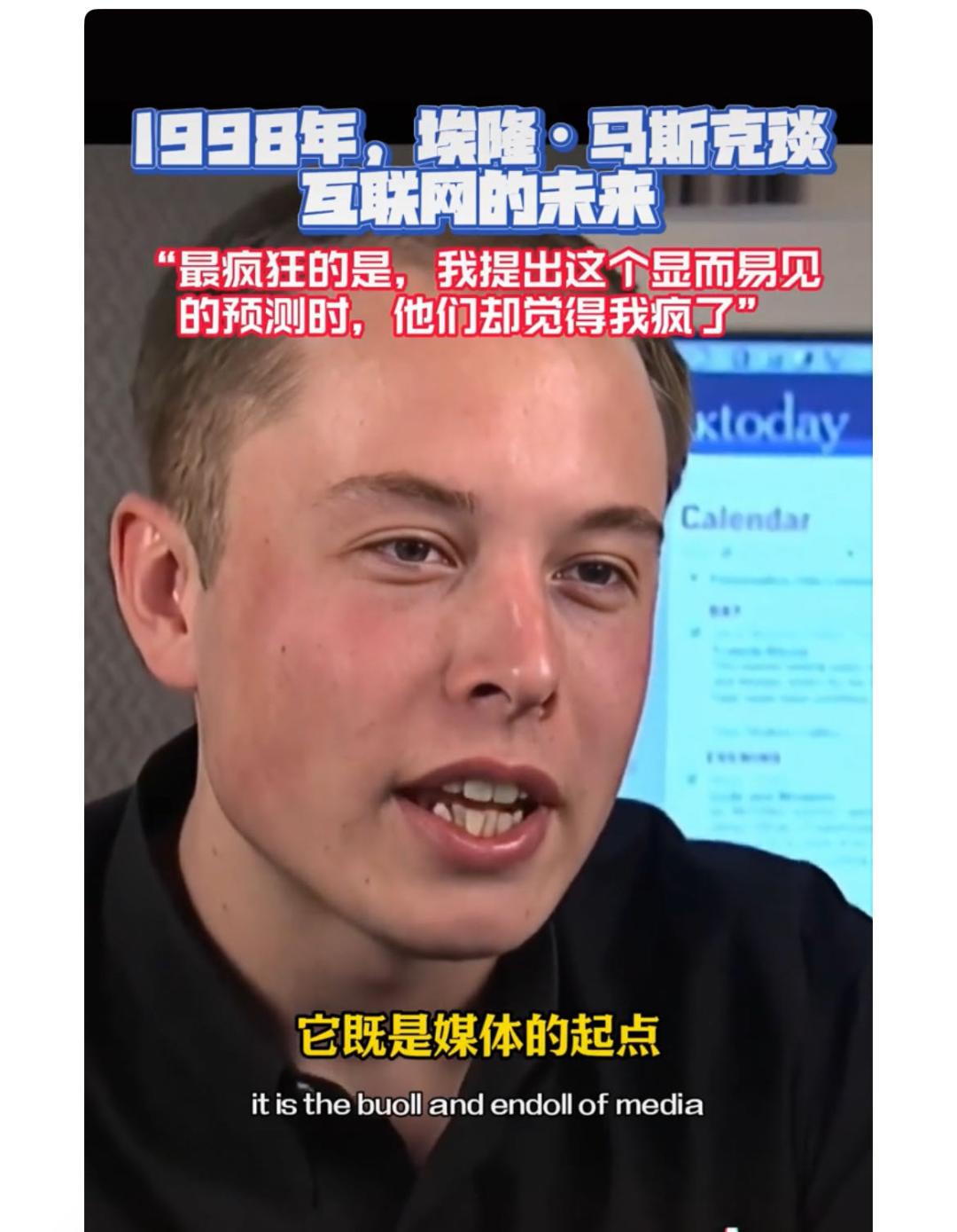 “互联网是所有媒体的超级集合。印刷、广播,甚至是电台,几乎所有形式的媒体最终都会融入互联网。它让消费者能够自由选择想看什么、什么时候看。这将彻底颠覆所有传统媒体。”这段话完美概括了我们今天所见到的互联网世界。无论是新闻、视频,还是社交媒体,都验证了马斯克的前瞻性。像电报之于路透,互联网之于马斯克,他们都看到了技术背后更深的商业潜力。