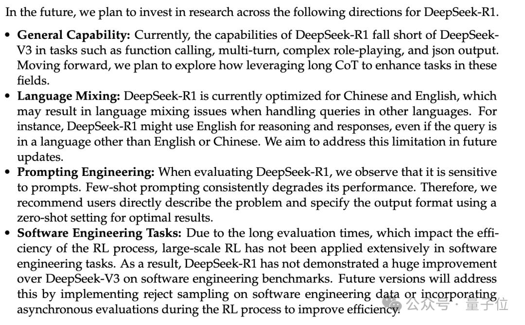 未来他们计划在以下方向继续投入研究:提升通用能力、解决语言混杂问题、优化提示词敏感问题,以及改进软件工程任务的性能。