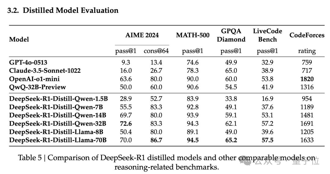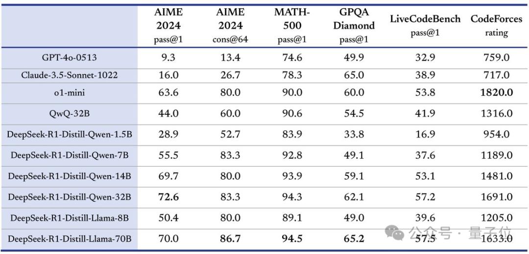 这次DeepSeek总共开源6个在R1数据上蒸馏的小模型,其中蒸馏版Qwen-1.5B都能在部分任务上超过GPT-4o。