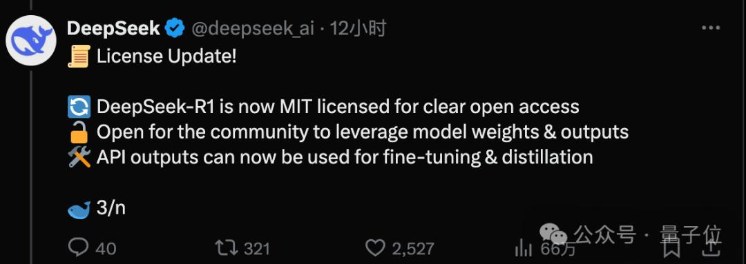 DeepSeek还特别更新了开源许可证,现在是MIT Lisence。