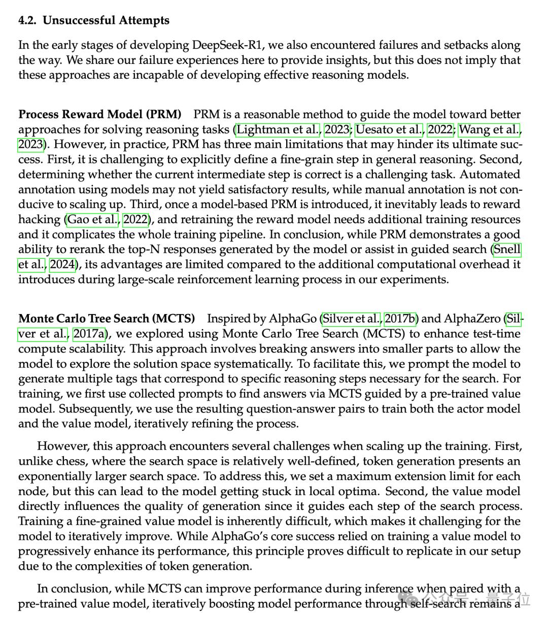 在过程奖励模型、蒙特卡洛树搜索算法上,DeepSeek都没能获得进展。