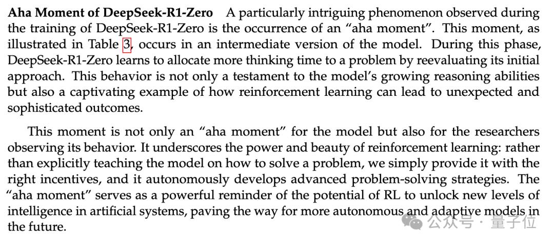 R1-Zero模型在思考过程中涌现了“顿悟时刻”(aha moment),并自己学会为问题分配更多思考时间。