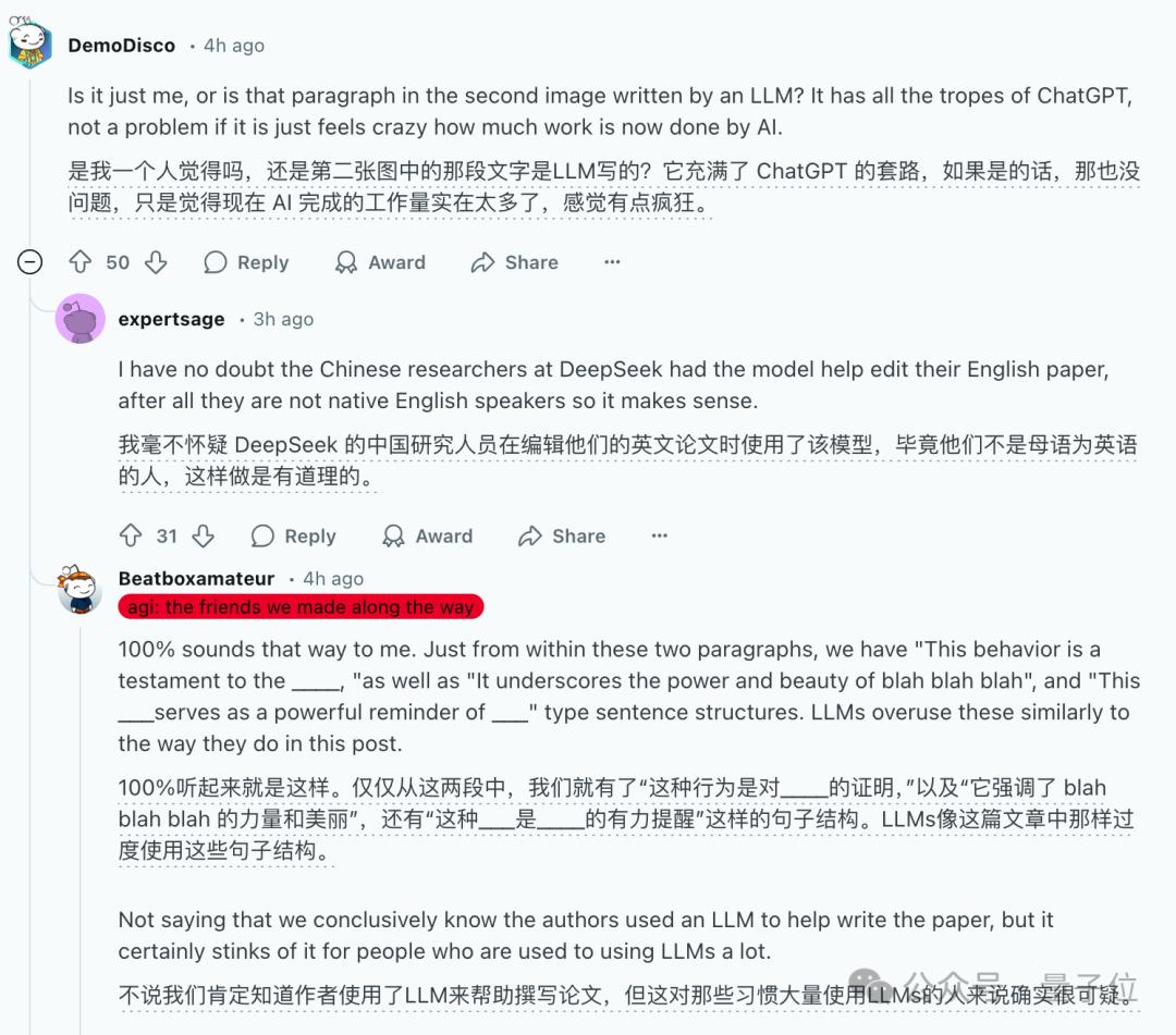 还有英语母语者挑起了论文中的遣词造句,认为很可能是大模型帮团队撰写的论文。