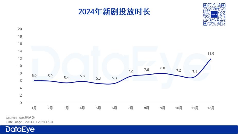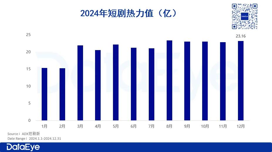 2024年,IAP模式虽保持增长,但增速有所放缓。根据DataEye-ADX短剧版,在2024年上半年单日热力值超1000万的短剧屡见不鲜,但到了下半年,单日热力值超500万的短剧都屈指可数。