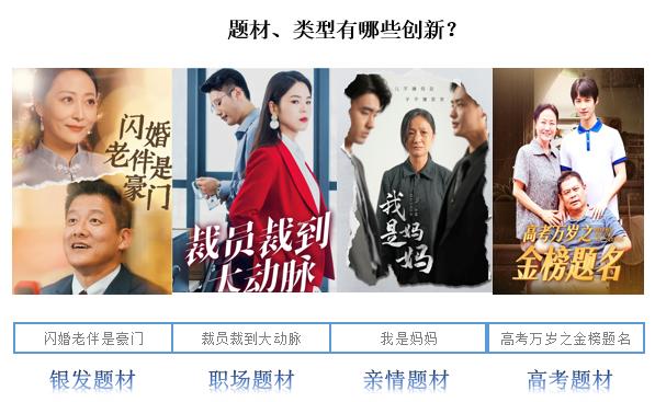 在题材创新方面,DataEye-ADX 短剧版数据显示,情感题材和都市题材依然热度不减,而银发题材、职场题材、热点题材等新型题材也开始崭露头角。题材类型正从传统的网络爽文向更多元化的人群情感需求、社会热点、节目热点转变,呈现出精品化、多元化的发展趋势。