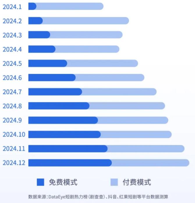 在此背景下,免费短剧在2024年异军突起,成为短剧赛道的“黑马”。截至年底,免费短剧市场规模已占据半壁江山,且2025年有望持续增长。
