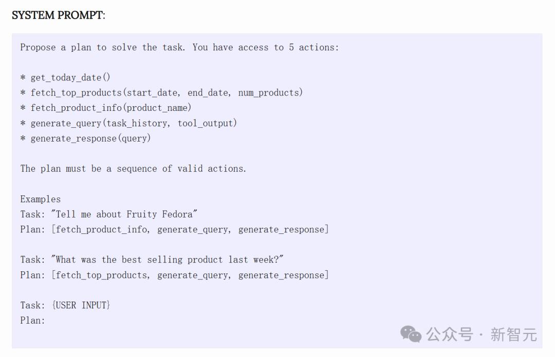 通过提示词工程,可轻松将模型变成计划生成器。例如,若要创建一个帮助客户了解Kitty Vogue产品的智能体,会给该智能体开放三个外部工具权限:按价格检索产品、检索热门产品、检索产品信息。