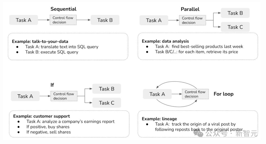 目前所有示例的执行方式都属于顺序式,即计划中的下一个行动要在前一个行动完成后才会执行。然而,顺序执行只是多种控制流中的一种,此外还有并行、条件语句以及for循环等。