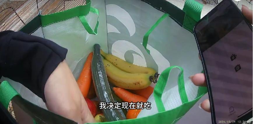 早早在学校领到的免费补助蔬果,有黄瓜、胡萝卜、香蕉等
