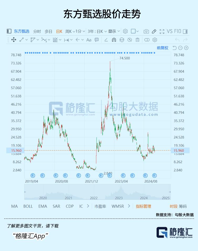 目前,东方甄选股价跌至15.740港元,市值167.59亿元 ,几乎回到了2019年上市之初的水平。