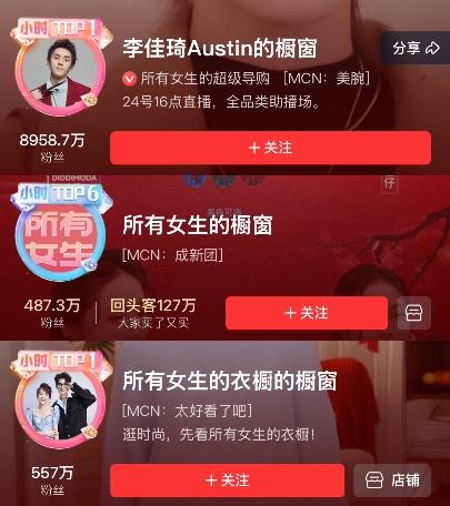 美ONE旗下的新直播间“所有女生”、“所有女生的衣橱”,至今粉丝数不到李佳琦的十分之一。
