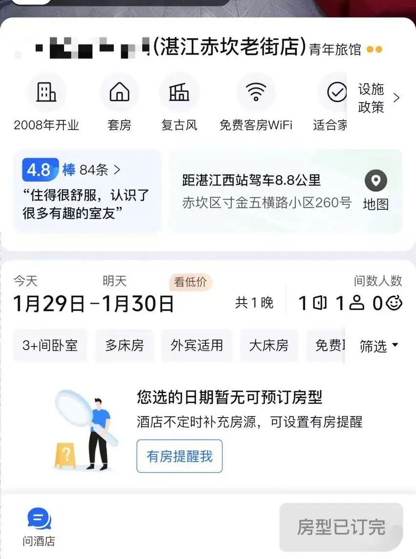 在湛江赤坎老街开了家青年旅舍的陈哥透露,以往有不少背包客都是去海南玩的时候会在湛江歇脚一晚再坐船过去,很少有人专门到湛江玩,所以春节期间的房间总是订不满。今年的情况不同,基本在过年期间,没有空房,连床位都没有了。