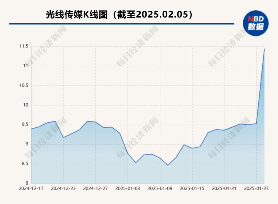 2月5日开盘后,《哪吒2》的主出品方光线传媒(300251.SZ,股价11.44元,市值335.6亿元)冲向涨停板。截至收盘,光线传媒以336亿元的总市值,领先224亿元市值的万达电影约50%。