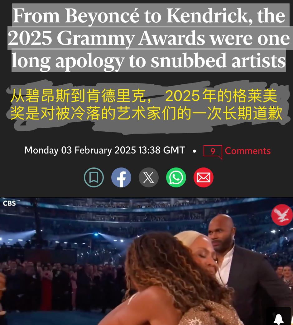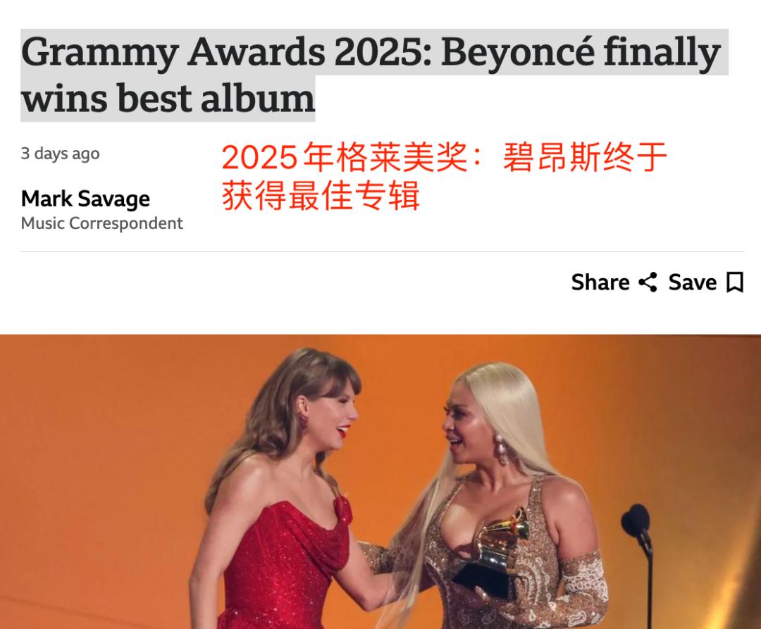 一年一度的格莱美音乐奖落幕,Beyoncé终于如愿以偿地拿到了年度专辑,Kendrick Lamar则包揽了年度制作和年度歌曲。