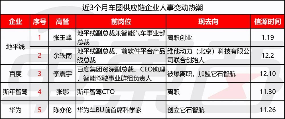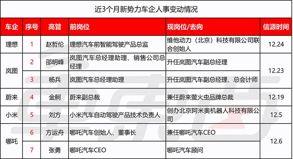 相比多家国有车企开年换防密集,新势力车企高管变动相对较少,主要以两种方式呈现,一类是车企智驾大牛的辞职创业,一类则是主要话事人走向台前。