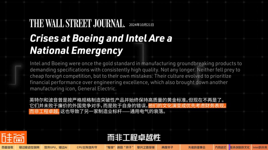 华尔街日报也将波音与英特尔一起类比评论道,这两家公司的企业文化逐渐发展为优先考虑财务业绩而非工程卓越性。
