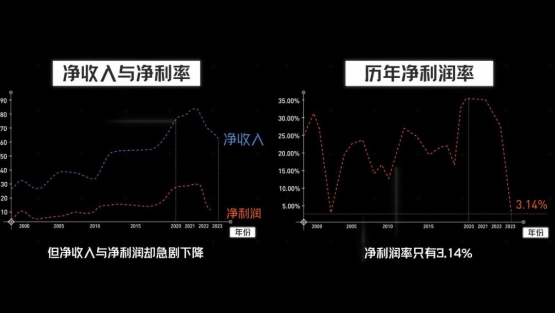根据英特尔的财报数据,从2021年Pat上台后,研发费用开始大幅上升,但净收入与净利润却急剧下降。特别是2023年,净利润率只有3.14%,创下了英特尔三十年来的历史新低。