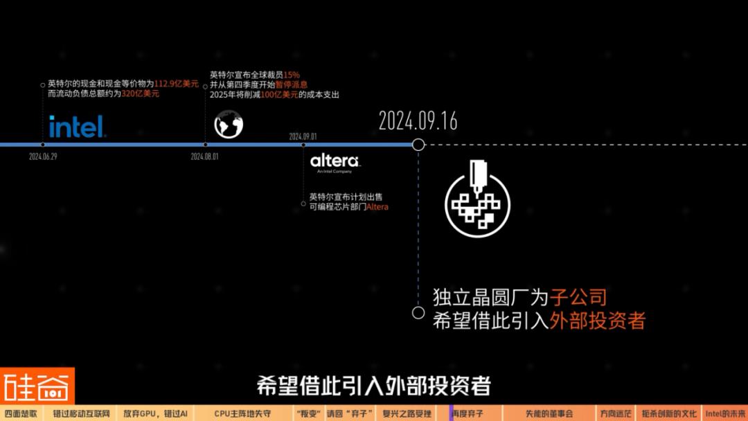 9月16日,英特尔称要独立晶圆厂为子公司,希望借此引入外部投资者。