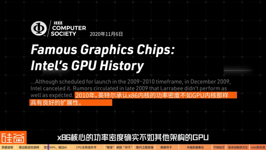 后来在2010年时英特尔自己也承认,X86核心的功率密度确实不如其他架构的GPU。往后的十年间,英特尔一直缺席了独立显卡市场,错过了矿潮,也错过了AI。