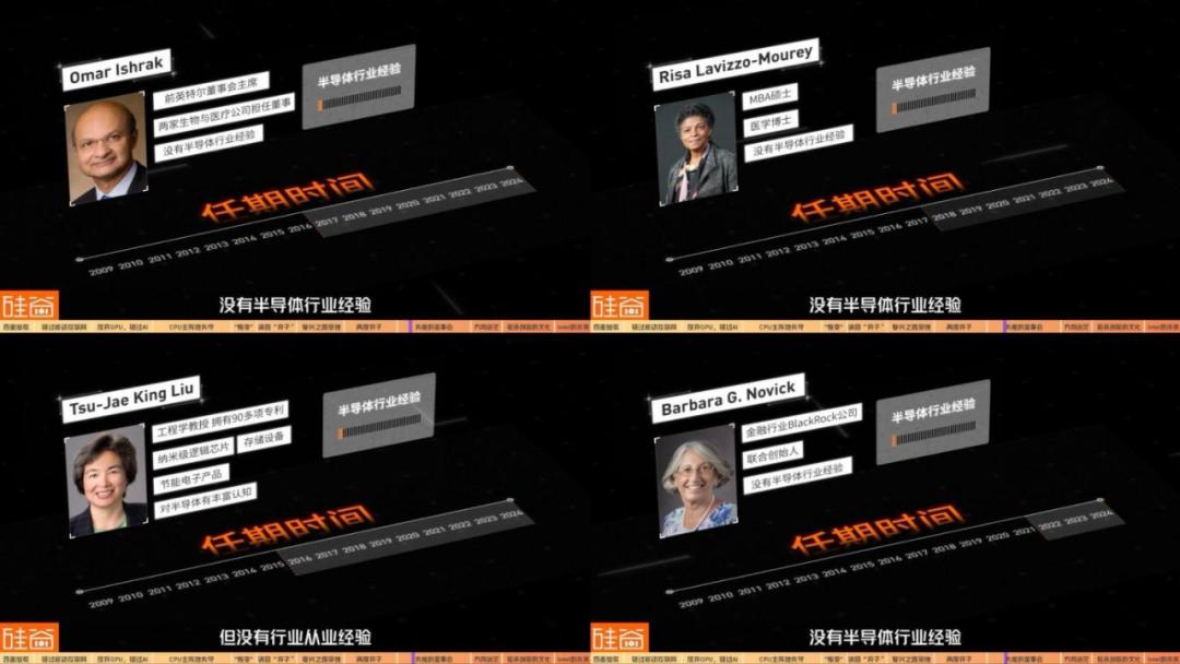 在扒开董事会的垂帘后,我们发现此前英特尔11位董事会成员中,真正有丰富半导体行业经验的,竟然只有1位,甚至好几位成员都是败军之将。