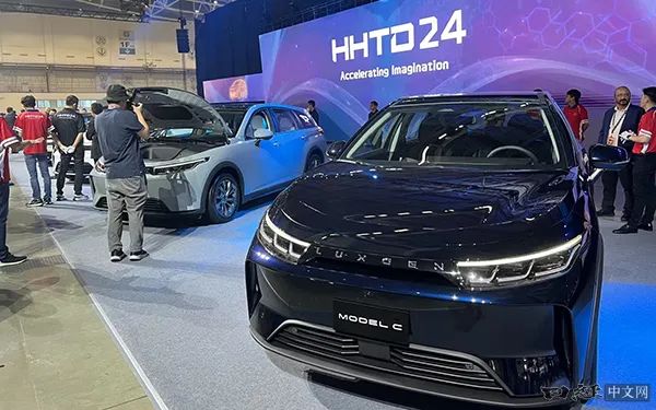 鸿海在展会上展示的EV。尽管采取了承接汽车开发和生产的商业模式,但并未如预期实现增长(2024年10月,台北)