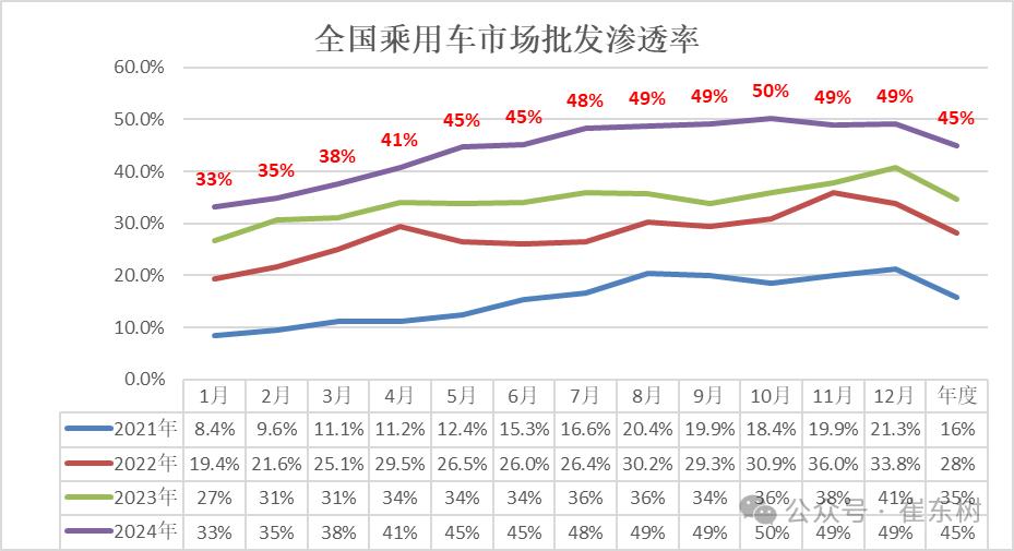 去年7月份开始,新能源汽车在国内的零售渗透率首次突破了50%。紧接着,11月又创下新能源年度产销量破1000万辆的新纪录。